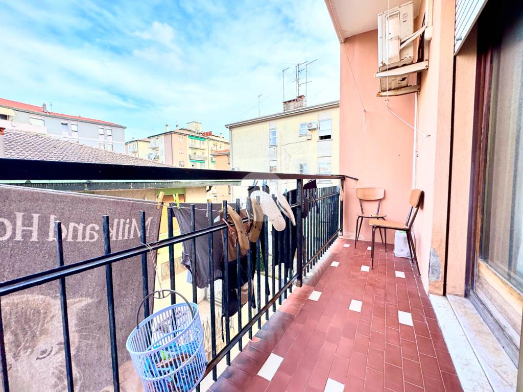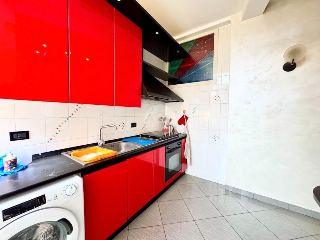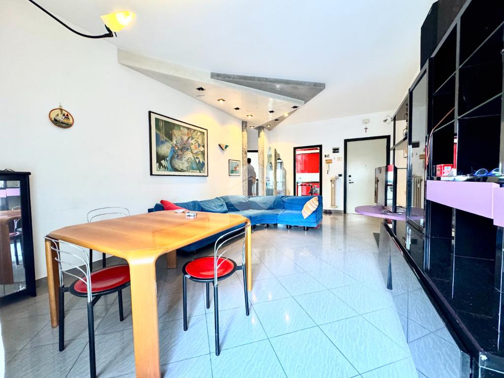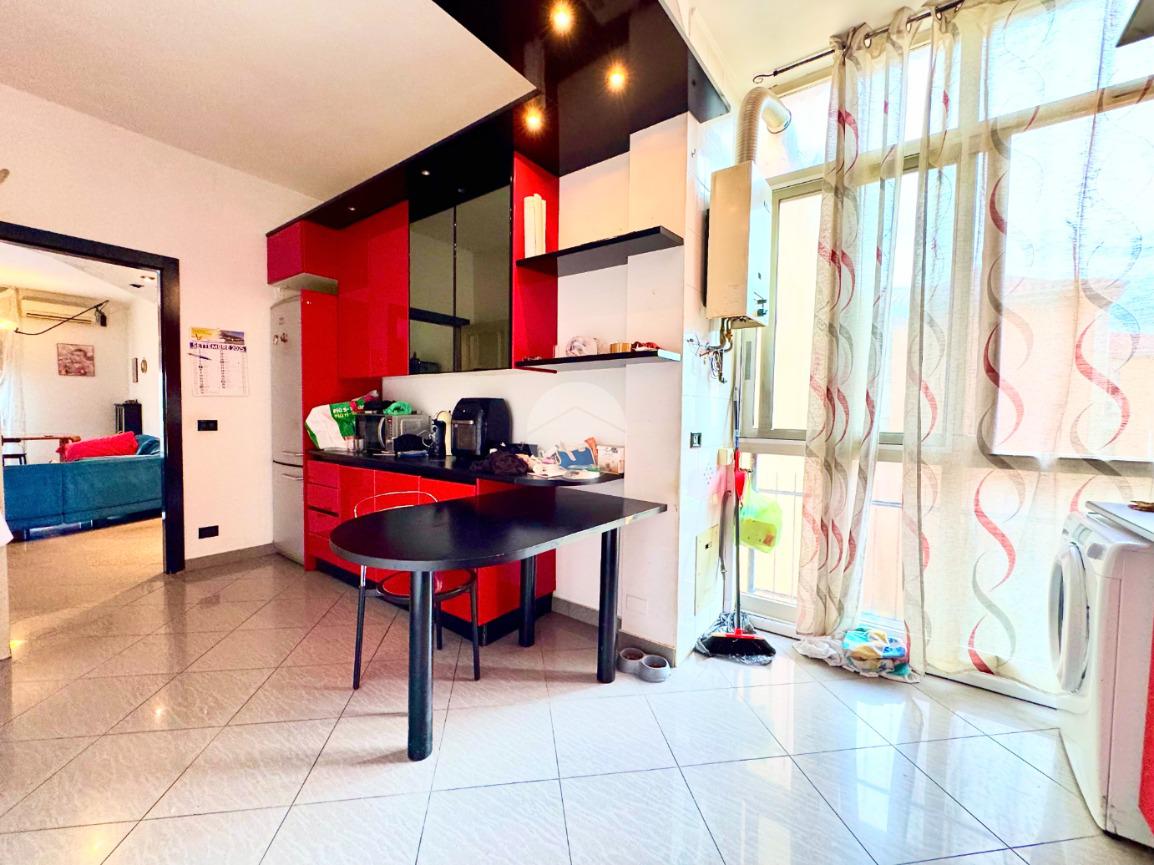 L'appartamento è composto da ingresso su ampia zona pranzo-soggiorno con accesso al balcone, cucina separata, una camera matrimoniale, una cameretta e bagno finestrato con box doccia e vasca.