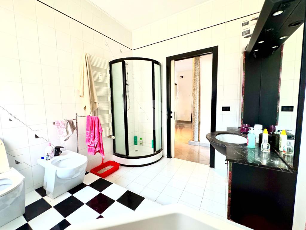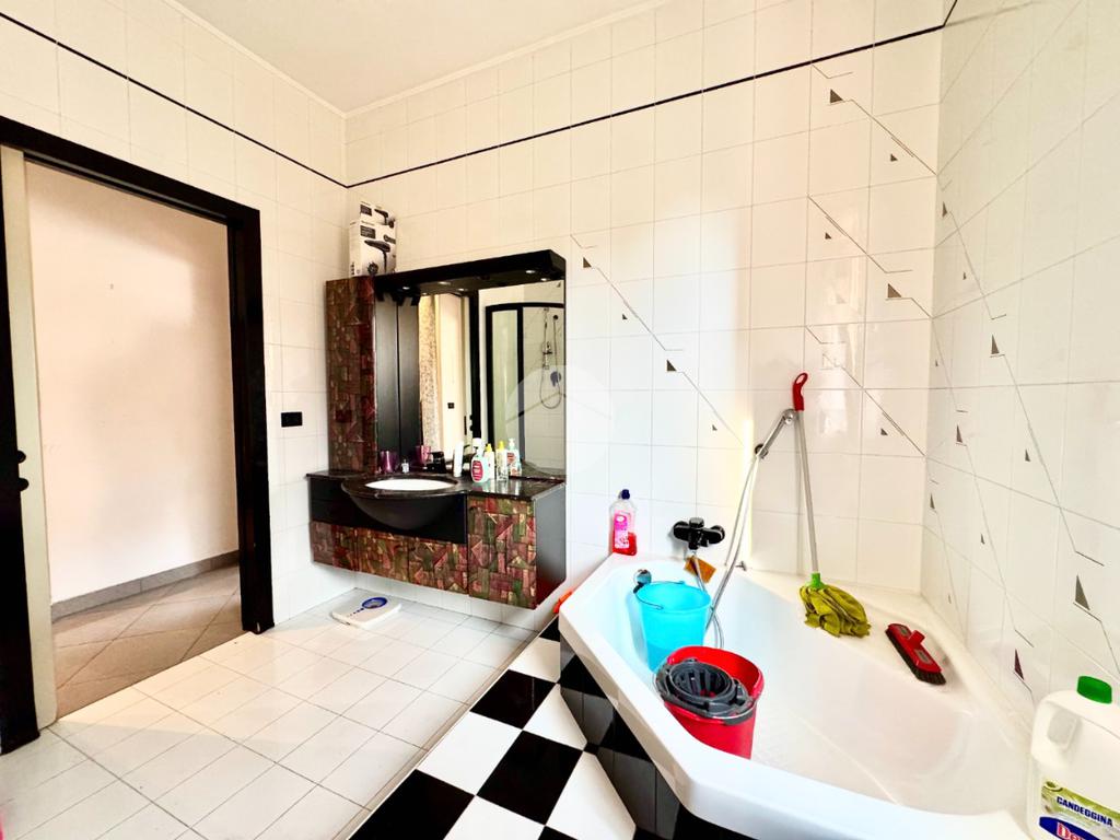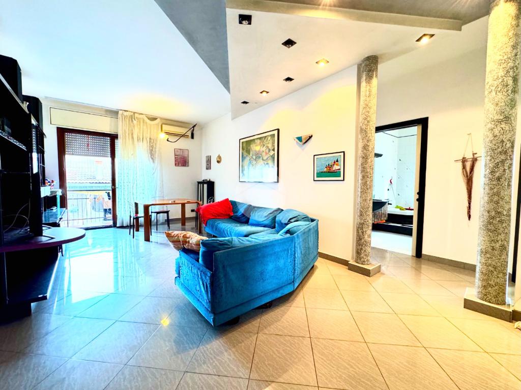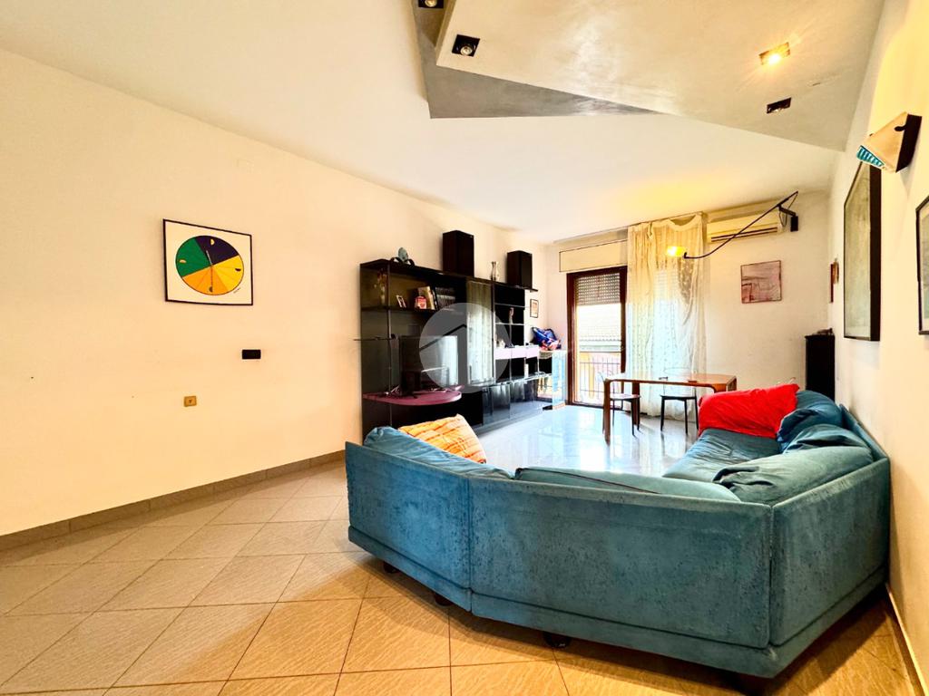 L'appartamento è composto da ingresso su ampia zona pranzo-soggiorno con accesso al balcone, cucina separata, una camera matrimoniale, una cameretta e bagno finestrato con box doccia e vasca.