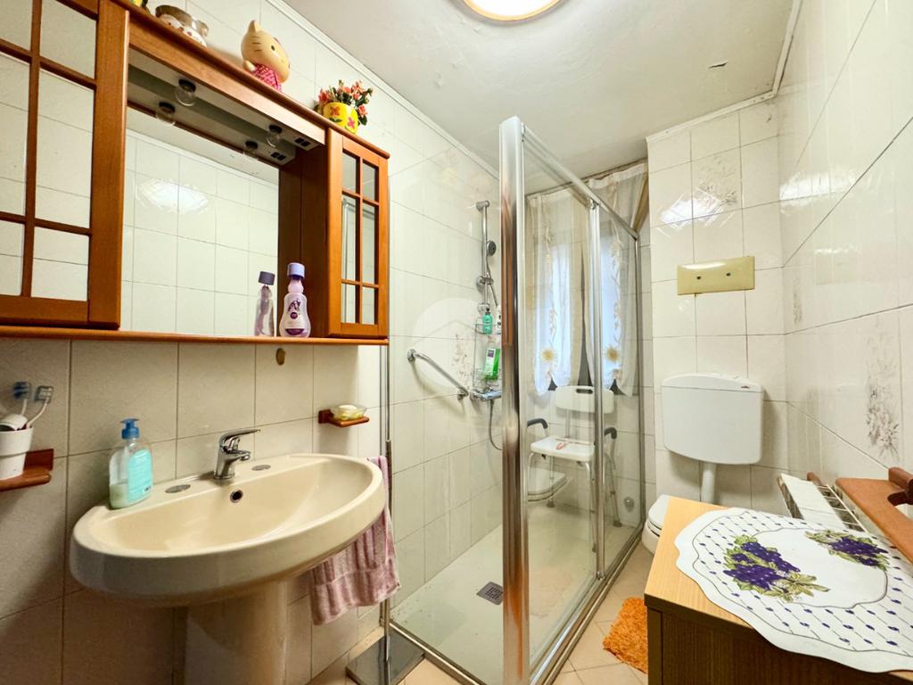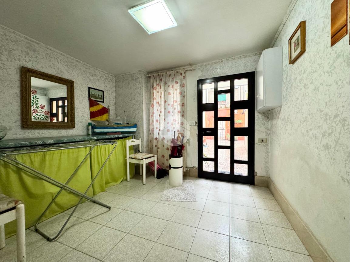 Si accede alla proprietà tramite un'ampia corte che immette all'ingresso comune al piano terra, dove troviamo bagno e ripostiglio di proprietà.