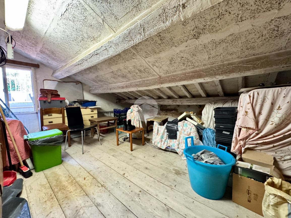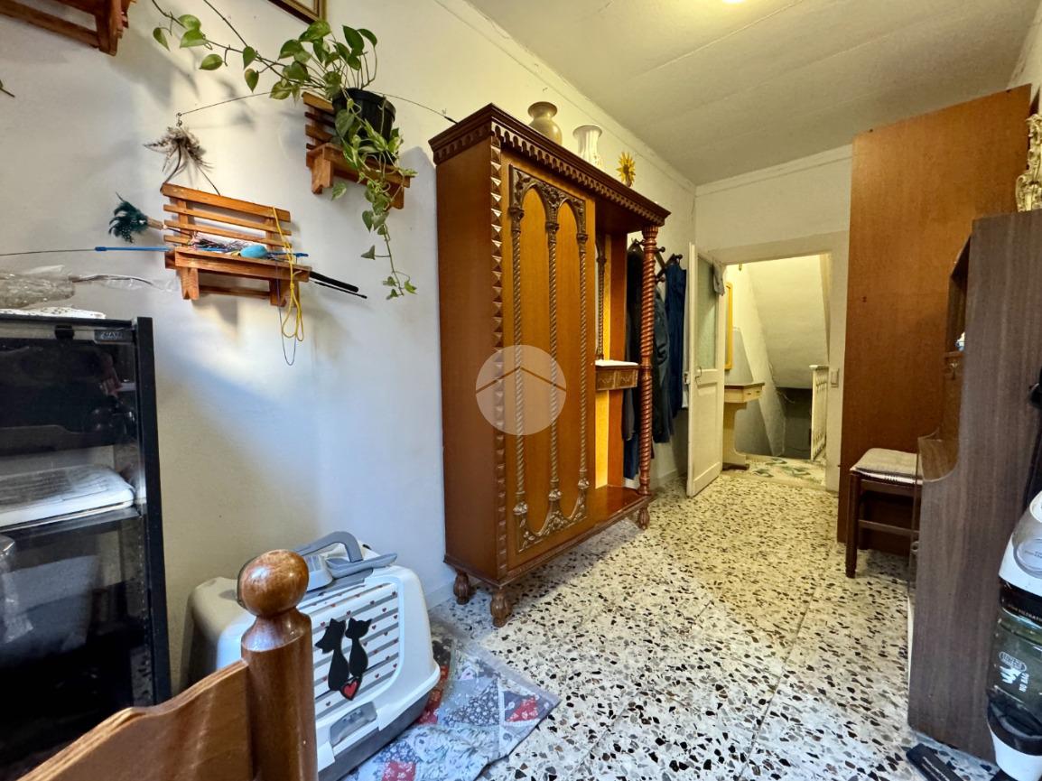 L’immobile si apre su un ingresso che conduce a un pratico ripostiglio e a un bagno finestrato con box doccia.