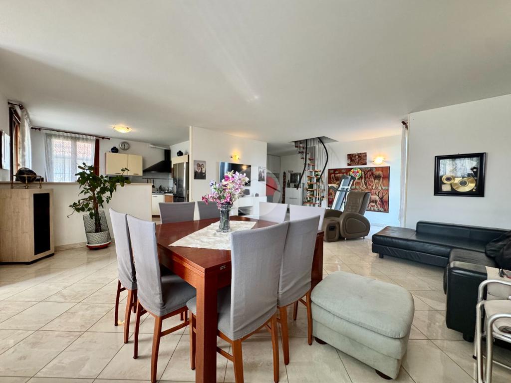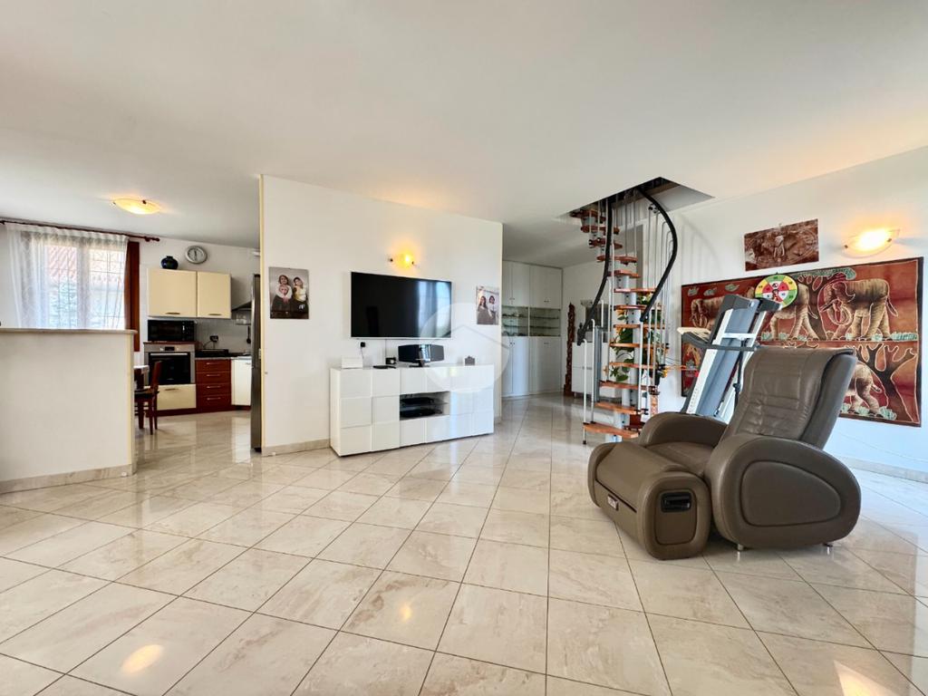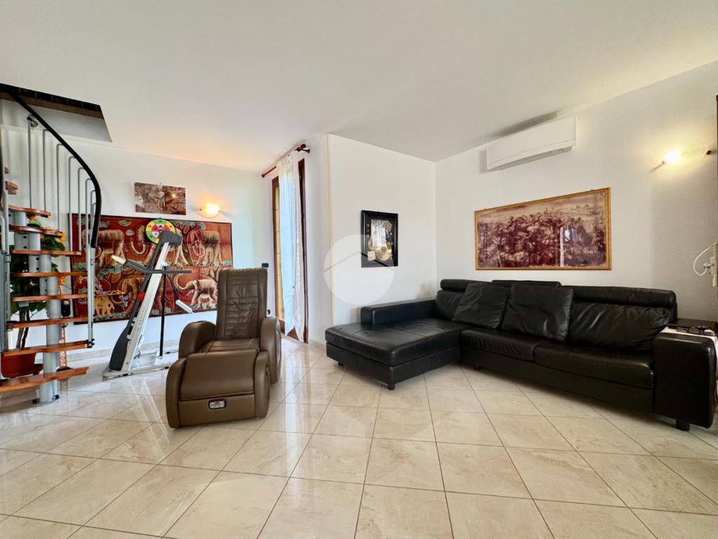 L’immobile è ben diviso tra zona giorno e zona notte che è composta da zona lavanderia, due camere singole, camera matrimoniale con cabina armadio e ampio bagno finestrato con vasca. Al piano superiore ampio sottotetto pavimentato.