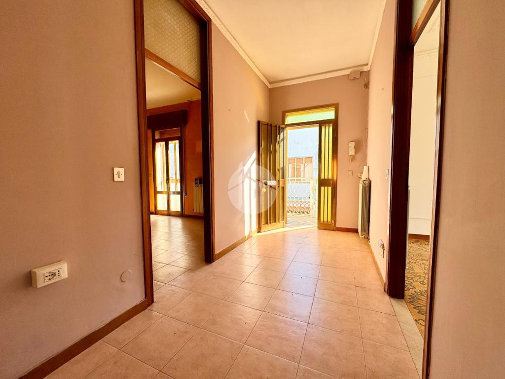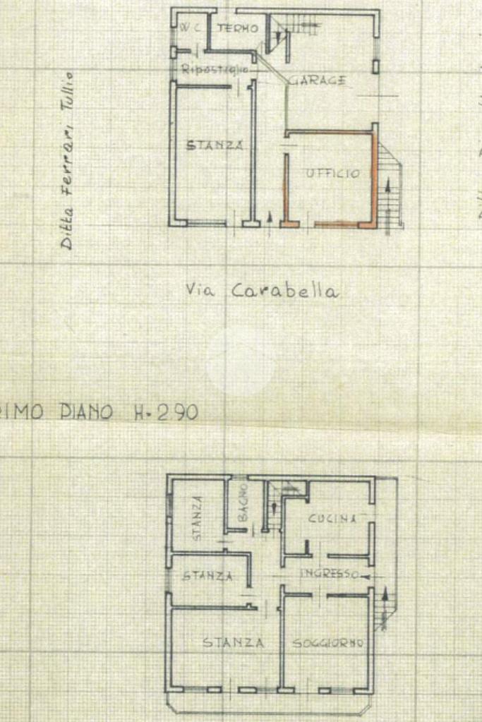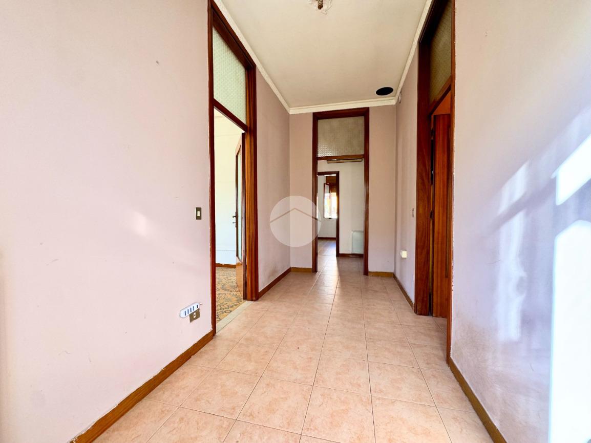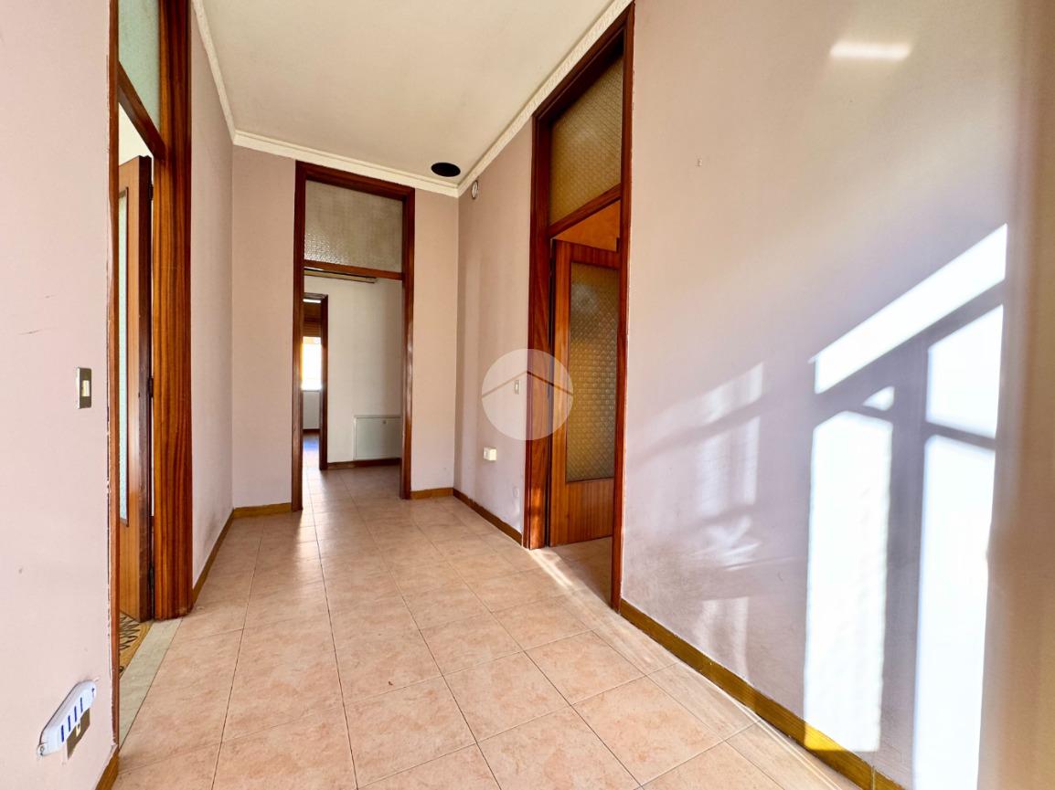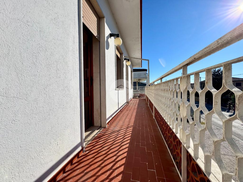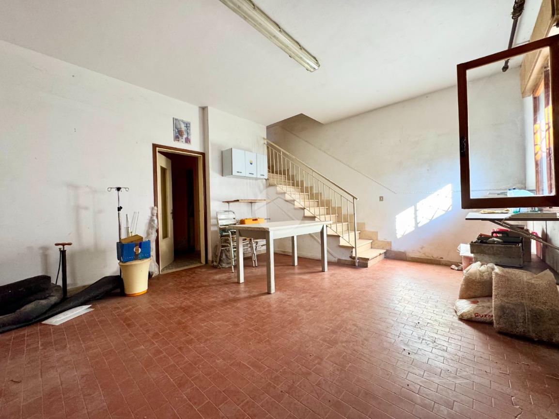 L'appartamento al primo piano è composto da ingresso, cucina abitabile con cucinotto, soggiorno, tre camere da letto, bagno e poggiolo.