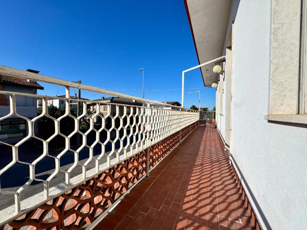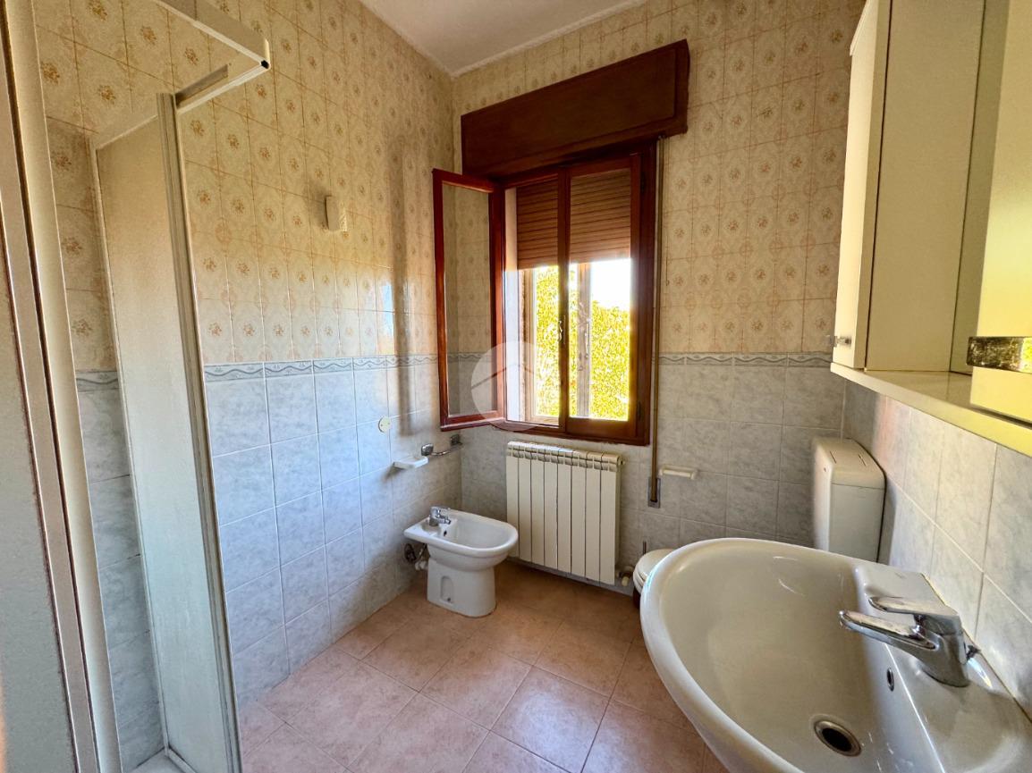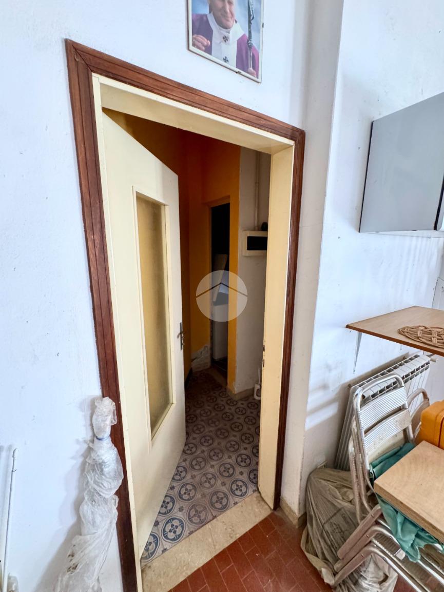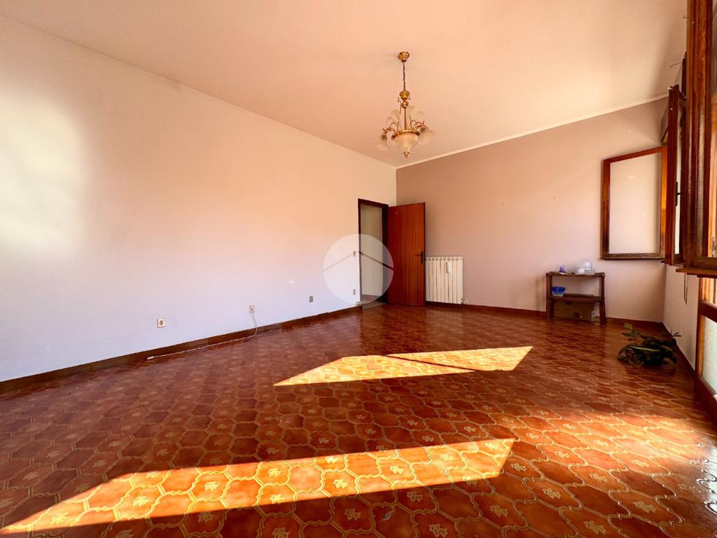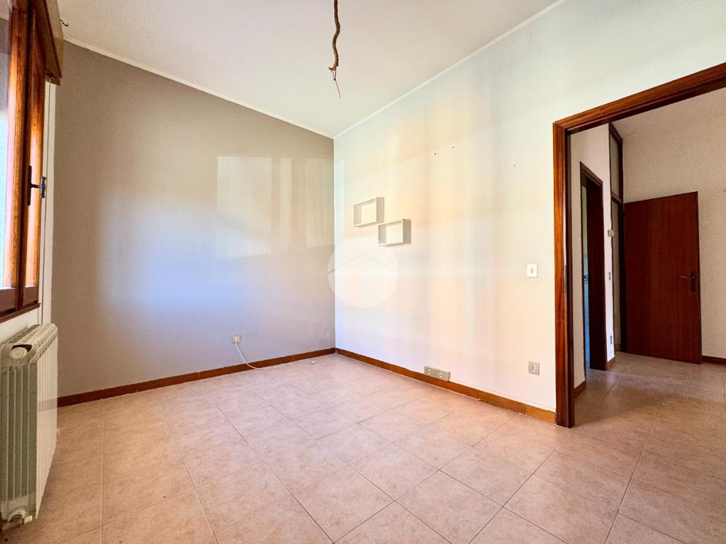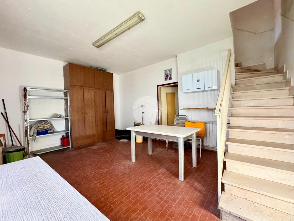 L'appartamento al primo piano è composto da ingresso, cucina abitabile con cucinotto, soggiorno, tre camere da letto, bagno e poggiolo.