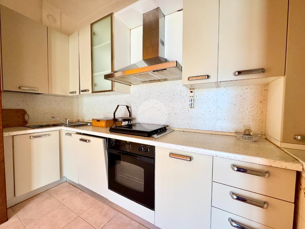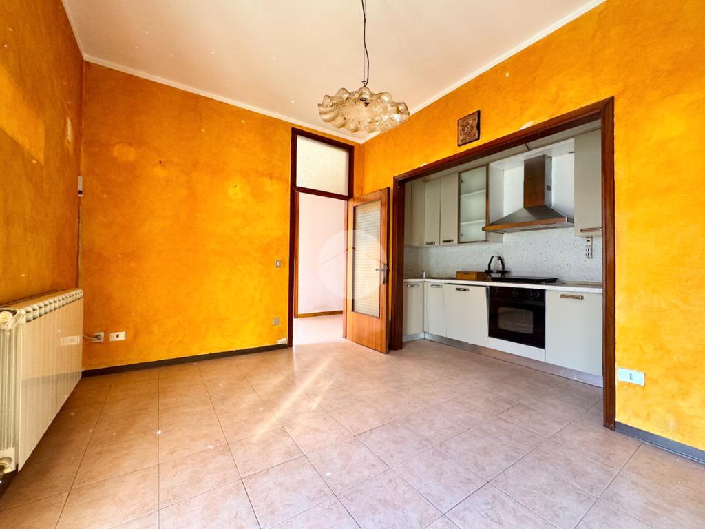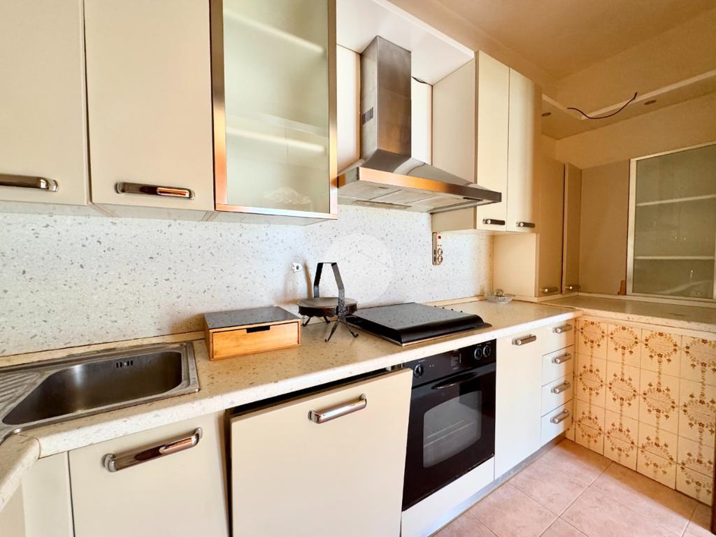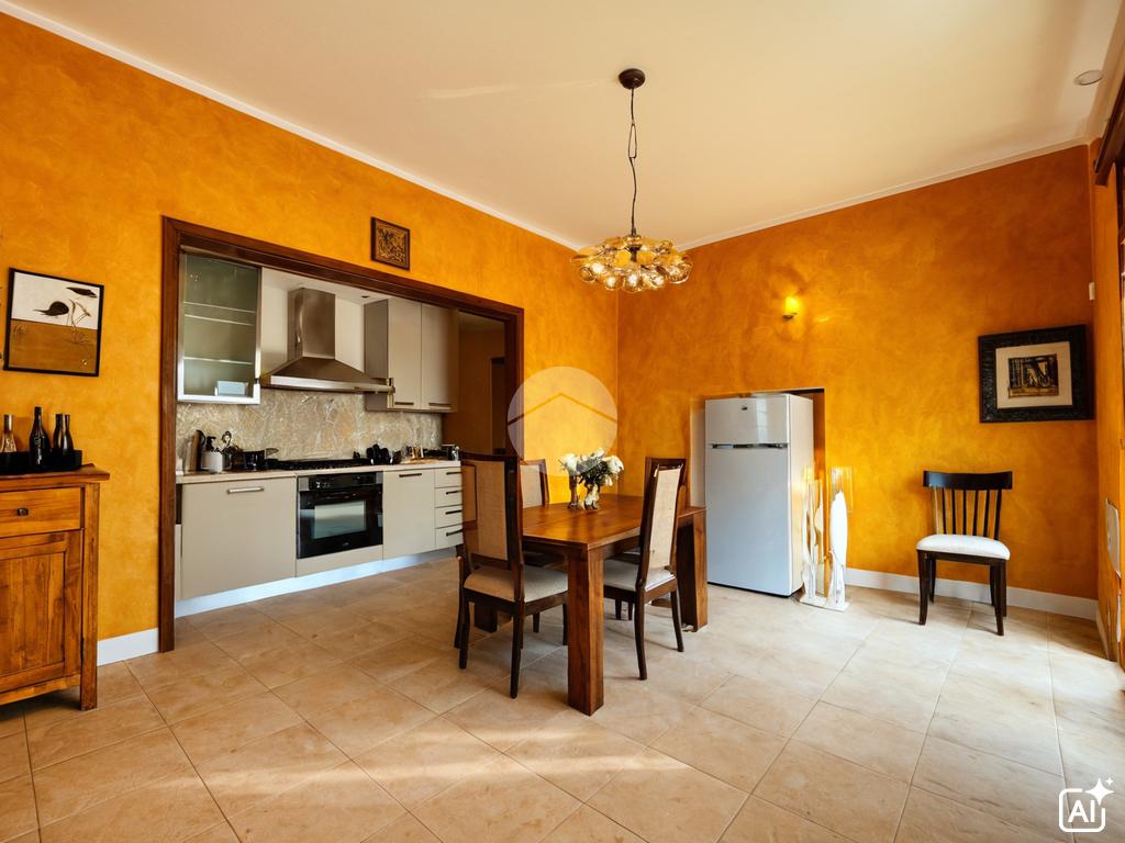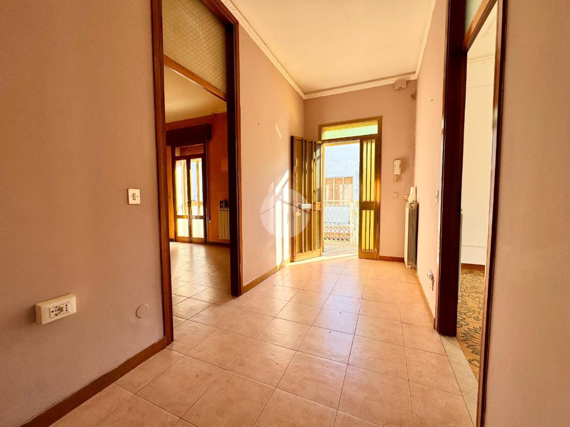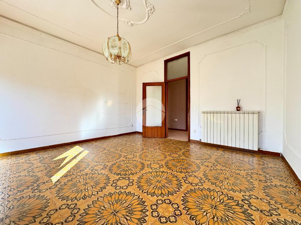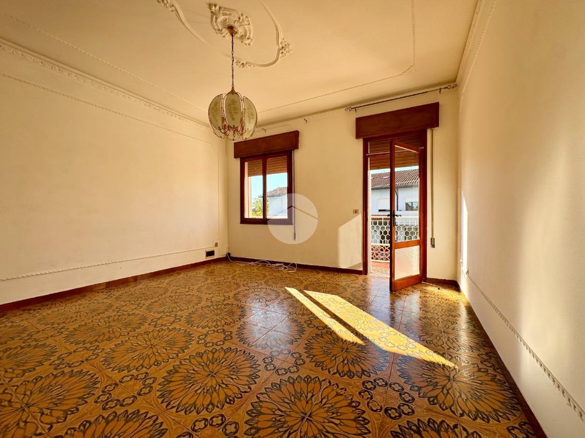 L'appartamento al primo piano è composto da ingresso, cucina abitabile con cucinotto, soggiorno, tre camere da letto, bagno e poggiolo.
