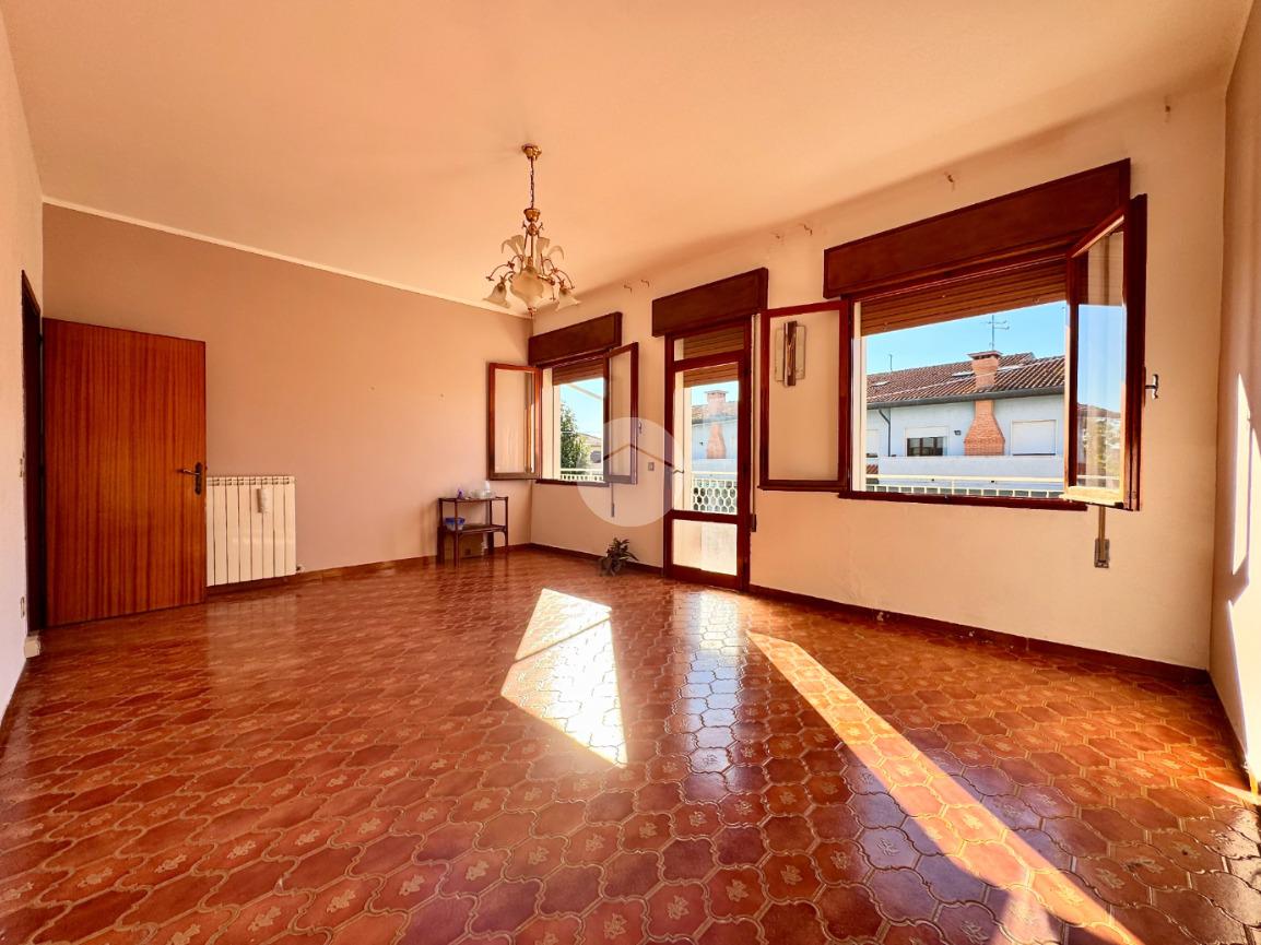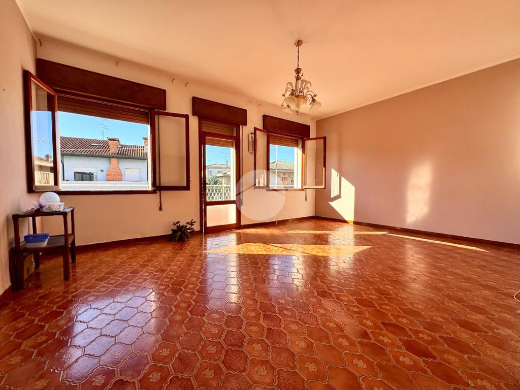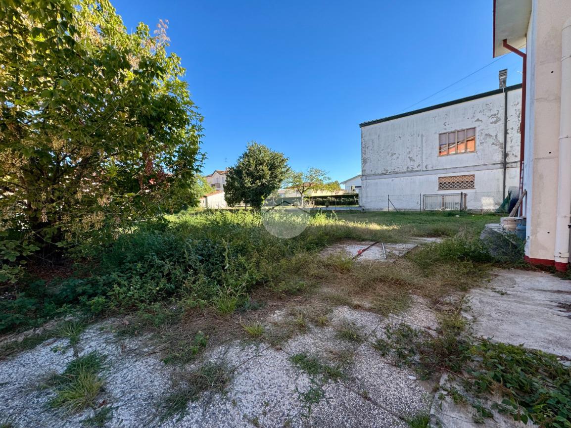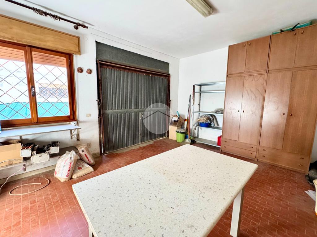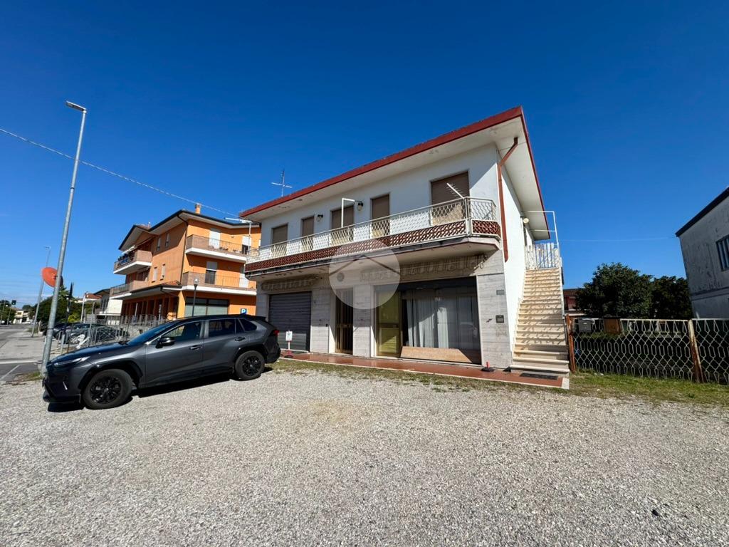 ROSOLINA: si propone in vendita casa indipendente con appartamento al primo piano, garage e due negozi al piano terra con giardino.